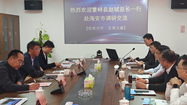 11月7日,趙斌一行與海安市人民政府副市長施金華、海安經濟技術開發區黨工委副書記、上湖創新區黨工委書記陳崇進、海安太原理工大學產業研究院院長韓建超等交流座談,參觀考察北材南通金屬科技有限公司。座談會上,趙斌全面介紹繁峙縣經濟社會發展、重點建設項目、投資環境、營商政策等情況,並表示,要積極學習借鑒海安的先進理念做法,希望通過太原理工大學產業研究平台,積極發揮雙方資源優勢,搭建溝通對接橋梁,不斷深化合作,為雙方高質量發展注入源源不斷的新動能,實現共贏發展。
