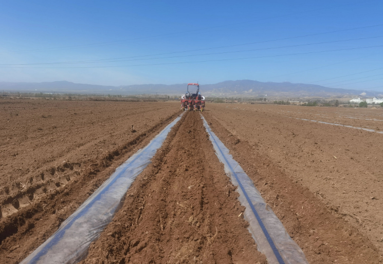 4月23日,朔城區現代農業發展服務中心農技人員深入南榆林鄉金土地農牧有限公司的田地進行技術指導,遠遠便看到幾台加裝北斗衛星導航設備的膜側播種機歡快地奔跑在田地裡,車后留下兩行筆直的地膜帶。問到導航的優勢,黃錄經理打開了話匣子:“以前的膜側播種依賴人工操作,播種行距不均,為保証播種質量還得跟機,一台機器播種效率也低。現在將兩台機子組裝在一起,加上北斗導航系統的運用,我這4000多畝地往年三台單機同時作業需一個月,今年三台組裝機半個月便可完成,行距誤差不超2厘米,且根據用種量推算,能比往年多種出30多畝地,效率大幅提升,還省了三個人工,確實好!”