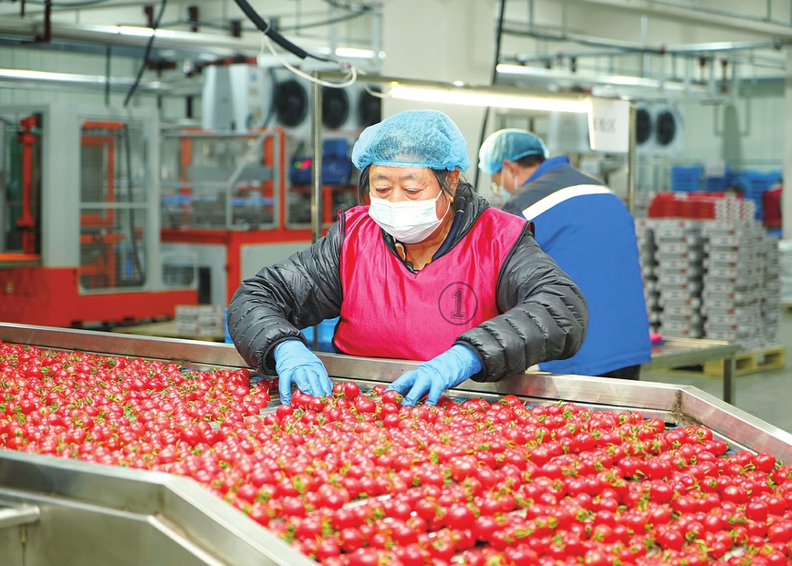 圖②:華聯農業發展(陽高)公司員工分揀“陽高紅”西紅柿。