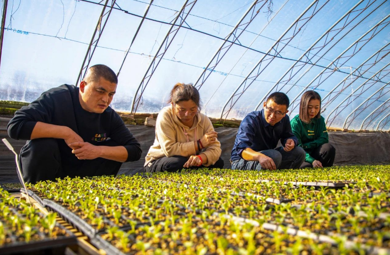 育苗也是春耕生產的關鍵一環。在襄研種植專業合作社的大棚裡,暖意融融,種植戶正忙著整理苗床、澆水、覆土、裝盤、搬運,一眼望去,大棚內一株株幼苗破土吐綠,春意盎然。
