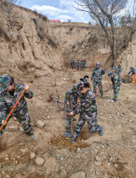 山西新聞網三農頻道訊 為踐行“綠水青山就是金山銀山”的生態發展理念,4月6日,朔州市平魯區人武部組織干部職工和民兵應急分隊人員,到訓練場參加春季義務植樹活動。與此同時,各鄉鎮(街道)武裝部也分別組織基干民兵開展植樹造綠活動。