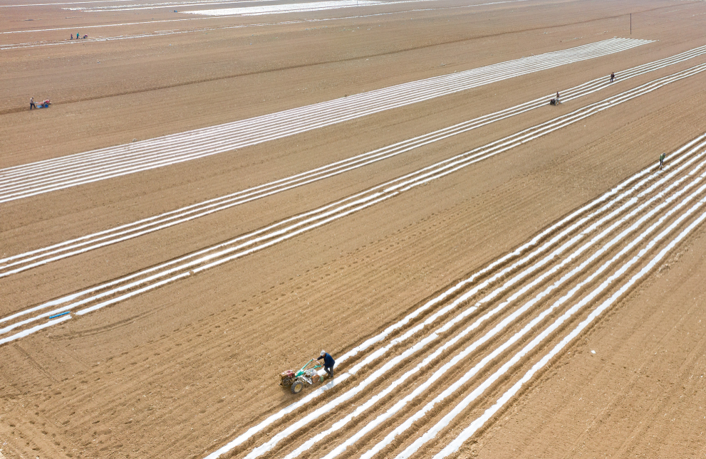 山西新聞網三農頻道訊 4月13日,左權縣羊角鄉、芹泉鎮境內的有機旱作基地裡,隨處可見三三兩兩的村民在利用小型農機具鋪設地膜,為下一步播種玉米做准備。伴隨著噠噠噠噠的馬達聲,泛著白光的地膜在機具后不斷延伸,描繪出一幅幅極具韻律美感的春日田園風景畫。