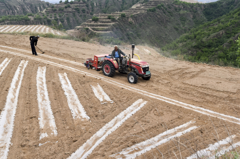 石樓縣靈泉鎮板橋村推廣使用全生物降解地膜