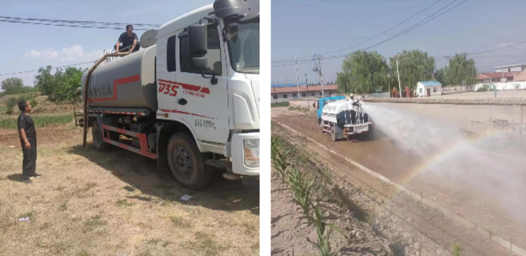為解燃眉之急,駐村工作隊與村支兩委成員立即深入田間地頭摸排庄稼生長情況,幫助村民協調水車澆地、打開深井抽水泵、連接多節澆灌帶,全力打通田間灌溉“生命線”,用心用情保障村民生產生活用水。水車噴洒形成一道道彩虹,一股股清涼的水流開始源源不斷涌入干涸的土地,村民臉上也終於展露笑容。