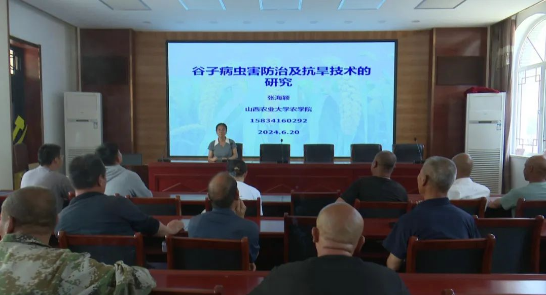 在三都鄉西峪村,一場谷子病虫害防控及抗旱技術研究的專題講座也在同步進行。山西省農科院副研究員博士后張海穎用通俗易懂的語言,圍繞谷子病虫害種類、發生特點、防治技術及抗旱技術等方面與廣大農民進行了深入交流。並建議大家要根據谷子種植模式、雜草種類與分布特點,加強田間管理,提高抗病能力,爭取今年谷子的大豐收。