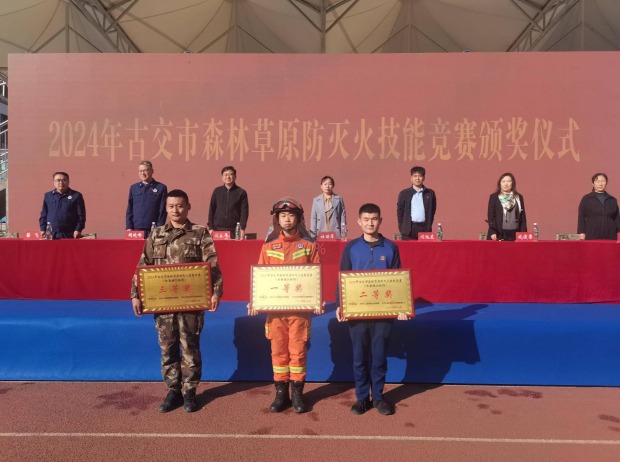 經過兩天的激烈比拼,古交市森林草原防滅火技能競賽順利圓滿完成各項競賽任務。在10月29日的閉幕式上,向榮獲團體獎和個人單項獎的單位和個人頒發獎牌和榮譽証書。古交市消防救援大隊獲負重三公裡越野項目團體一等獎、古交市森防專業隊郊區中隊一組獲負重三公裡越野項目團體二等獎、古交市森防專業隊郊區中隊二組獲負重三公裡越野項目團體三等獎﹔古交市森防專業隊郊區中隊獲水泵接力協同項目團體一等獎、古交市消防救援大隊獲水泵接力協同項目團體二等獎、太原市國有林場專業隊獲水泵接力協同項目團體三等獎。森防專業隊郊區中隊李金龍等18人在競賽中獲個人單項獎。市總工會將為榮獲單項獎的個人給予記功表彰。為了鼓勵大家參與競賽的積極性,本次競賽還頒發了道德風尚獎和優秀組織獎。