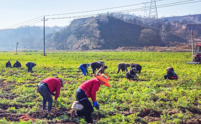 胡蘿卜種植屬於“短平快”高效農業,而且具有一定耐寒抗旱能力,從育苗、管護到成熟採摘,每個環節都需要大量勞動力,有效帶動周邊村民實現家門口就業。