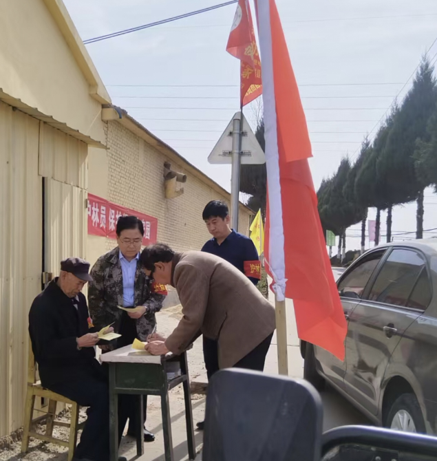 3月26日上午10時許,在黎城縣西仵鎮坑西村外的森林防火檢查點,縣財政局到村幫扶干部王志勇、周雷、張澤康向進山祭掃的村民發放森林防火宣傳彩頁,勸導村民文明、綠色祭掃,做綠水青山的守護者。