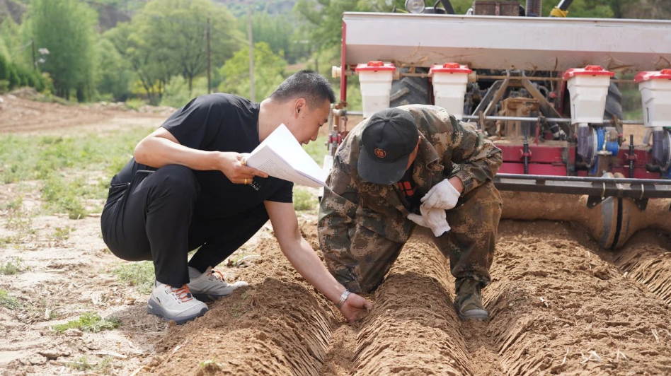 農技推廣項目負責人賈建平介紹,新品種強盛370玉米具有抗旱特性,成熟后顆粒飽滿、產量高,搭配應用的“一免五增”播種技術為農科院最新研發成果,兼具抗旱、保?、出苗率高及增產優勢,去年實施后群眾反饋良好、效果顯著。今年計劃在3個實驗基地推廣,覆蓋800畝種植面積,將由專職指導專家與特聘農技員全程提供指導服務,新品種與新技術的應用可大幅節省種植成本。