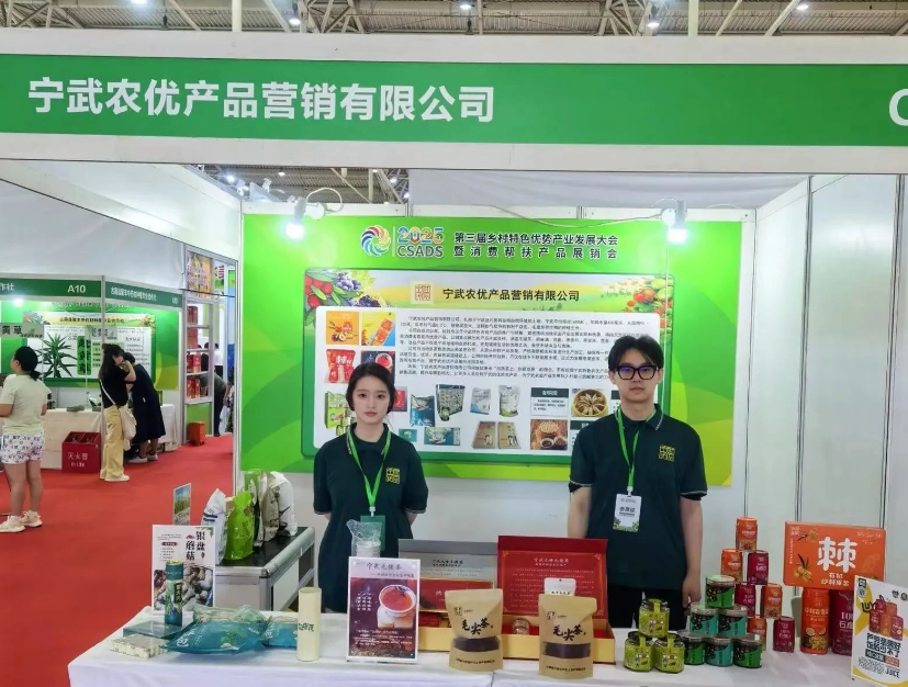 在寧武縣產品展區,毛建茶、銀盤蘑菇、?麥餅干、高原燕麥片等琳琅滿目的產品格外引人注目。從淺黃飽滿的高原燕麥片到散發著山野氣息的毛建茶,從生態健康的有機食品到工藝精湛的深加工系列產品,無不彰顯著寧武特色農產品的獨特魅力。企業通過現場展示、品鑒體驗等方式,吸引眾多電商平台、貿易流通渠道商現場洽談採購。