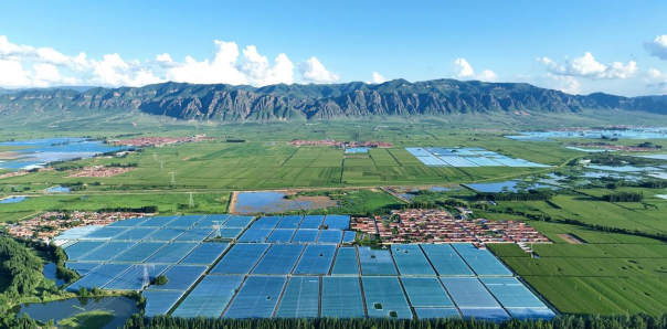 連片的西甜瓜種植基地與青山白雲相映成景