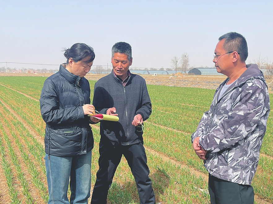 3月30日,記者在長子縣鮑店鎮大辛庄村看到,一片片綠油油的麥田迎風生長,充滿了生機活力。該縣農業農村局技術人員正在田間地頭仔細分析土壤?情,認真查看麥苗密度、分?數、根系等情況。