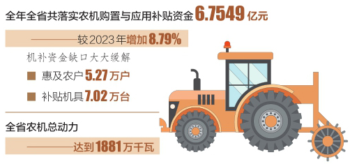 本報訊(記者王秀娟)3月19日,記者從全省農機化工作部署暨業務培訓會上獲悉,2024年我省主要農作物耕種收綜合機械化率達76.9%,高於全國平均水平。全年全省共落實農機購置與應用補貼資金6.7549億元,較2023年增加8.79%,機補資金缺口大大緩解,惠及農戶5.27萬戶,補貼機具7.02萬台。
