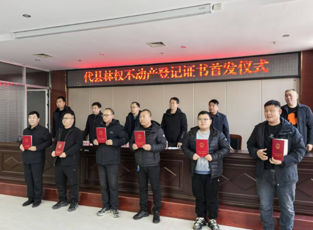 山西新聞網三農頻道訊 12月24日,在代縣政務服務中心舉行代縣林權不動產登記証書首發儀式,現場為首批林權不動產權利人頒發証書,這標志著代縣深化集體林權改革明晰產權工作邁出了關鍵一步。忻州市規劃和自然資源局副局長王建春,代縣政府副縣長李諾出席儀式。