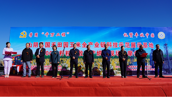 山西新聞網三農頻道訊 10月10日,山陰縣國禾田園玉米全產業鏈科技示范基地500畝籽粒直收測產烘干現場觀摩會在北周庄鎮新岱岳村舉行。省農業農村廳總農經師馬向榮、副縣長王建平以及省市縣有關領導、專家出席活動。