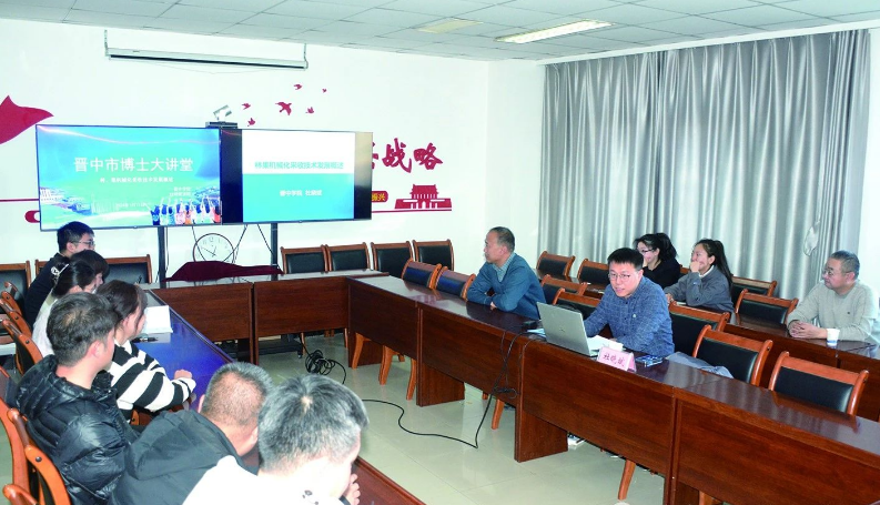 山西新聞網三農頻道訊 林果機械化採收是林果產業全程生產最重要的環節,如何加強農機與農藝配合,推動宜機化改造?近日,晉中市博士大講堂走進榆次區農業農村局,晉中學院講師杜曉斌博士應邀進行專題授課,為榆次區農業採收工作人員帶來了一堂誠意滿滿、干貨十足的課程。 講座中,杜曉斌以《林果機械化採收技術發展概述》為題,從實例入手,詳細介紹了我國林果種植的現狀和具體數據、林果產業的特點以及國內外採收的不同形式,並圍繞五種機械化採收技術及問題等和與會人員進行了深入交流探討,受到了大家的一致好評。