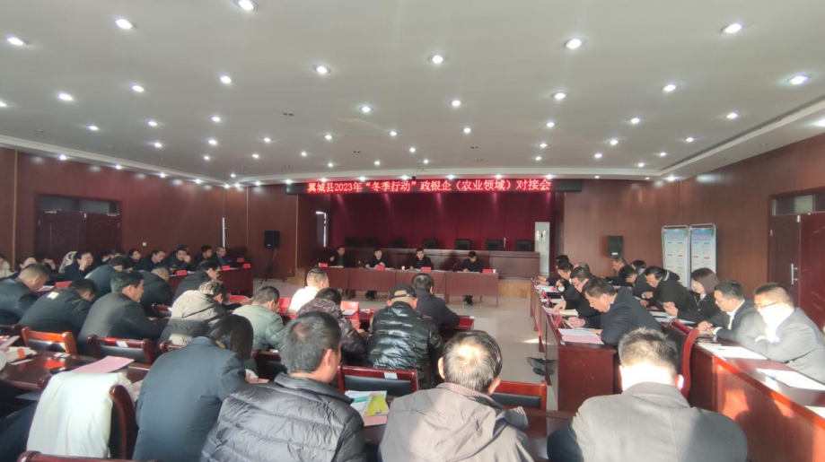 山西新聞網三農頻道訊 為切實解決涉農企業融資問題,幫扶涉農企業解決融資需求,12月19日,翼城縣在縣農業農村局召開了翼城縣2023年“冬季行動”政銀企(農業領域)對接會。縣委常委、常務副縣長范帆出席會議並講話,縣政府辦副主任翟鑫海主持會議,縣金融辦主任拜旭升、農業農村局副局長崔全福及相關部門、9家金融機構負責人及46家涉農企業代表參加會議。