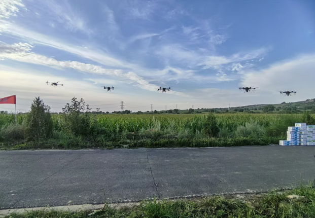 山西新聞網三農頻道訊 連日來,走進武鄉縣韓北鎮東堡村的大田裡,伴隨著一陣陣轟鳴聲,一架架滿載藥劑的植保無人機騰空而起。機手在地頭通過手持遙控器為無人機定速、定高、定量,無人機有序地噴洒殺虫殺菌劑和葉面肥,以達到防虫、防病、防早衰、增粒重的目的。