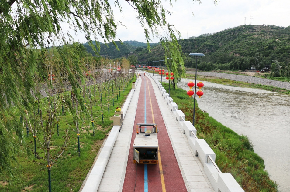近年來,靈石縣持續將生態建設放在經濟社會發展的突出位置來抓,高效有序推進汾河干流靈石縣段綜合治理工程,以河道治理促進水清岸綠,努力讓汾河水量豐起來、水質好起來、風光美起來,全力筑牢防汛第一道防線。 崔家溝村依靠河道打造的人行步道 日前,記者在位於靈石縣兩渡鎮冷泉村的汾河干流靈石縣段綜合治理工程看到,河道主槽拓寬工程已經全部完成,堅如磐石的堤防和灘槽穩固地鑲嵌在河道核心位置,為有效保護河岸不受洪水侵襲筑起了一道堅實的防線,同時,這些新構筑的防洪設施也成為了汾河靈石段沿線的一道亮麗風景線。