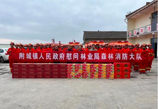 山西新聞網三農頻道訊 3月24日上午,陵川縣附城鎮黨委副書記、鎮長張培亮同鎮武裝部長焦哲明代表鎮黨委、政府,對縣林業局森林消防大隊進行慰問,為戰斗在滅火一線的扑火隊員們送去了附城肉丸、康師傅方便面和農夫山泉等應急物資,向他們表達了附城鎮黨委、政府及干部群眾的感謝和敬意。 近年來,縣林業局森林消防大隊積極發揚特別能吃苦、特別能戰斗、特別能奉獻的精神,忠誠履職盡責,為守護綠水青山和保衛人民群眾的生命財產作出了積極貢獻。