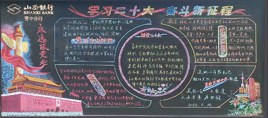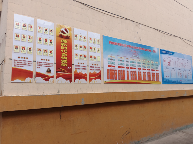 推進特色“文化牆”扮靚小區,在每個單元門口都增添了一塊小黑板,每塊小黑板的主題都是不一樣的,黨史知識類的、生活常識類的、民俗節日類的、社情民意收集類的﹔還有黨建大黑板,由小區黨支部黨員和熱心居民共同創作,主要是以黨的二十大為主題﹔還有樓棟之間的外牆上都制作了不同主題的文化版面。這些文化牆既是小區黨建的宣傳新陣地,是小區治理方式方法上的創新,也是小區黨支部和群眾溝通的“新亮點”。