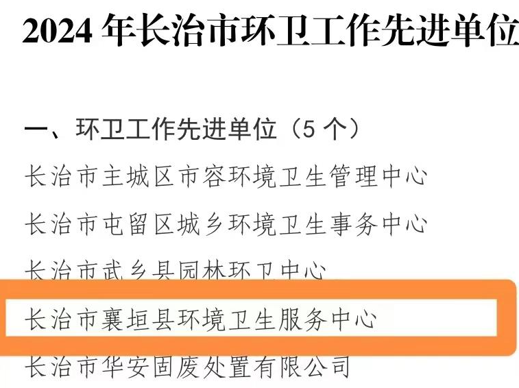 襄垣環衛中心榮膺“長治市環衛工作先進單位”