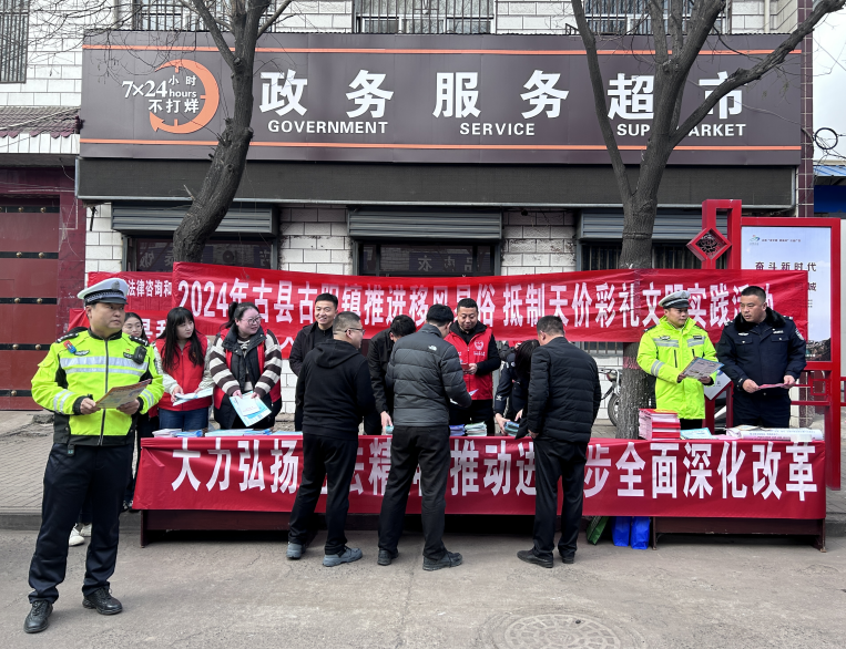 山西新聞網三農頻道訊 為進一步深化移風易俗工作要求,破除農村陳規陋習,倡導文明新風,近期,古縣古陽鎮新時代文明實踐所(站)持續推動移風易俗工作開展,積極宣傳引導形成喜事新辦、勤儉節約、文明高尚的生活方式,不斷提升社會文明程度。 集中宣傳,爭做移風易俗的踐行者 組織機關黨員領導干部、志願者深入街頭集中宣傳移風易俗、勤儉節約的生活方式,摒棄陳規陋習,弘揚傳統美德、倡導文明新風,爭做文明新風的宣傳員、倡導員。