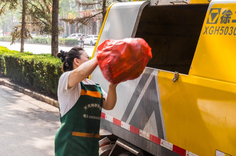 “文明襄垣是我們的家,保護環境共創美好……”上午八時整,伴隨著歡快的《垃圾分類》拍手歌,垃圾收集車准時駛入府東街。輕踩剎車,車輛平穩停靠,沿街商戶們“聞聲而動”,熟練地將垃圾投入車廂。