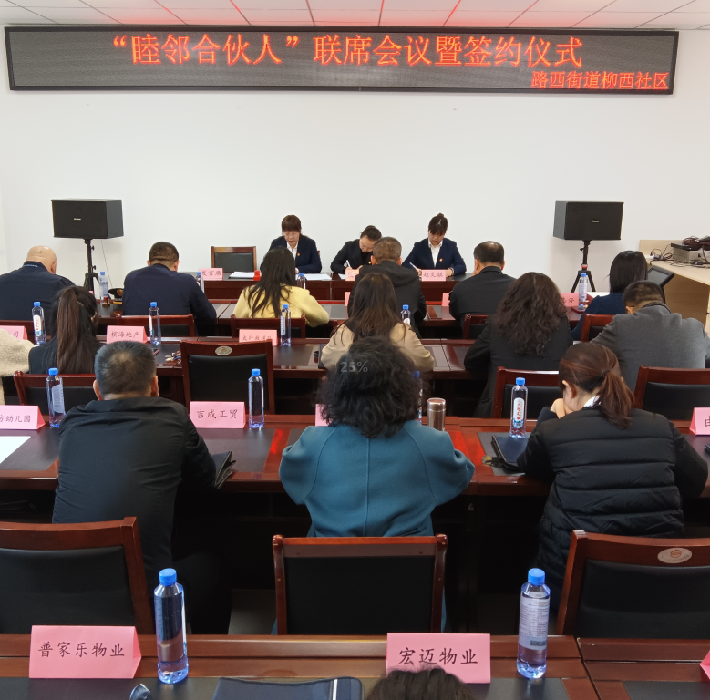 山西新聞網三農頻道訊 為進一步深化黨建聯建機制,提升基層黨組織凝聚力,推進社區治理“共建、共治、共享”,構建“資源互補、優勢互補、互幫互助、互惠互贏”基層新格局,3月29日上午,晉中市榆次區路西街道柳西社區聯合轄區24家單位召開 “睦鄰合伙人”聯席會議暨簽約儀式。 會上,社區黨委書記牛麗萍介紹了社區基本情況、社區需求清單,回顧了2023年共建工作成果,感謝“睦鄰合伙人”為社區基層治理工作做的貢獻。