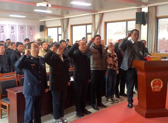 山西新聞網三農頻道訊 2023年12月4日是我國第十個國家憲法日,為弘揚憲法精神,維護憲法權威,強化法治理念,陵川縣崇文鎮組織全體機關人員集中舉行憲法宣誓活動。 “我宣誓:忠於中華人民共和國憲法,維護憲法權威,履行法定職責,忠於祖國、忠於人民,恪盡職守、廉潔奉公,接受人民監督,為建設富強民主文明和諧美麗的社會主義現代化強國努力奮斗!” 在領誓人的帶領下,全體機關人員神情肅穆,高舉右拳,向憲法庄嚴宣誓,會場氣氛嚴肅庄重,鏗鏘有力的錚錚誓言響徹全場。