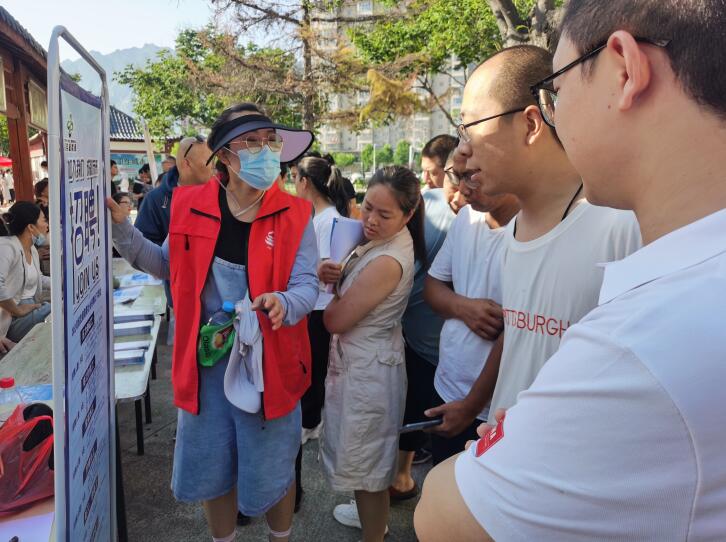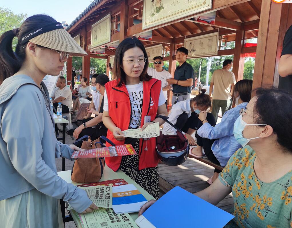 活動現場,過往居民不斷駐足了解、上前詢問崗位信息。永濟市城北街道辦事處工作人員和永濟市人社局就業服務中心工作人員合理分工,積極進行引導溝通。城北街道辦事處工作人員充分利用了解住區居民的優勢,協助人社部門和招聘企業宣傳招聘簡章、就業政策,提供暖心、順心、舒心的就業服務﹔永濟市人社局就業服務中心人員聚焦就業重點群體,對高校畢業生、農民工(脫貧勞動力)等人員進行現場登記,跟蹤式開展“一對一”就業服務。