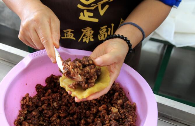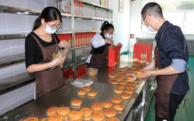 康民副食加工負責人付萍萍介紹,從8月初開始,他們就全力投入各式月餅的生產,制作月餅餡兒的核桃仁等食材都經過嚴格篩選,面粉選用的是康民面業公司自家生產的特級面粉,細膩筋道,月餅模子也是特別訂制的,圖案漂亮,打出來的月餅造型精美、保質保量。特別是傳統手工制作的“盂縣桃仁月餅”以其原汁原味和“家”的味道,深受消費者喜愛。