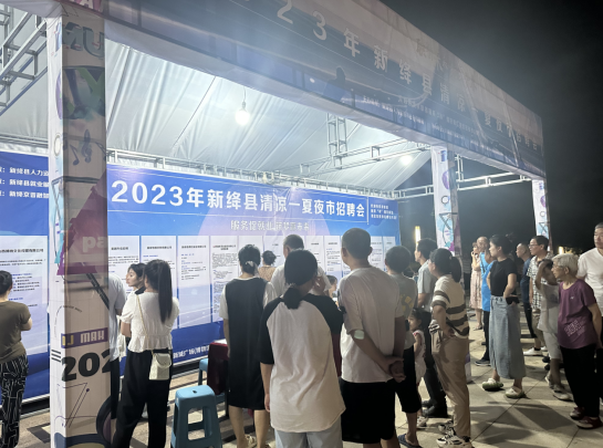 山西新聞網三農頻道訊 近日,新絳縣在夜晚的新城廣場舉辦“清涼一夏”夜市招聘會,以“人才夜市”的形式為用人單位和求職者在家門口搭建了便捷的雙向選擇平台。 此次“人才夜市”招聘會由新絳縣人社局、京晉融智人力資源公司聯合舉辦,招聘會現場彌漫著城市煙火氣,眾多求職者在逛夜市的同時,在招聘展位前駐足停留,詳細了解招聘信息。