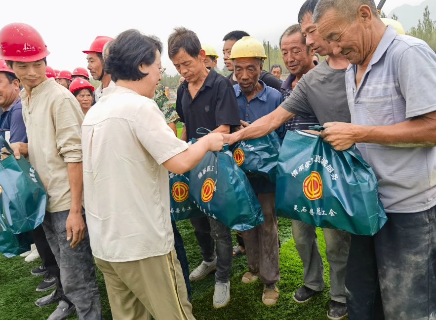 山西新聞網三農頻道訊 為保障高溫天氣廣大戶外勞動者的安全健康權益,8月18日,靈石縣總工會聯合縣衛健局開展“情系職工 夏送清涼”慰問活動。 活動中,工作人員為快遞員、環衛工人、大貨車司機、建筑工人等一線勞動者送去綠豆、冰糖、蜂蜜、茉莉花茶、毛巾、水壺等慰問品,並發放職業病防治宣傳資料,向在高溫酷暑下堅守工作崗位、辛勤工作的勞動者們送上關懷和溫暖。