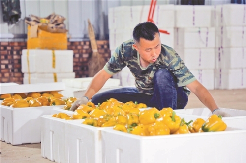 上圖:峽口村村民正在辣椒種植基地分類辣椒。 右圖:多彩的辣椒。