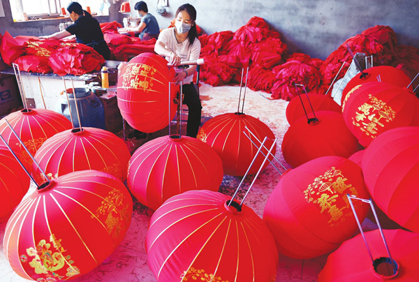 7月6日,稷山縣稷峰鎮楊趙村村民在制作燈籠。該縣楊趙燈籠產業園復工復產后,組織工人趕制訂單,使當地300余名村民在家門口實現了就業。