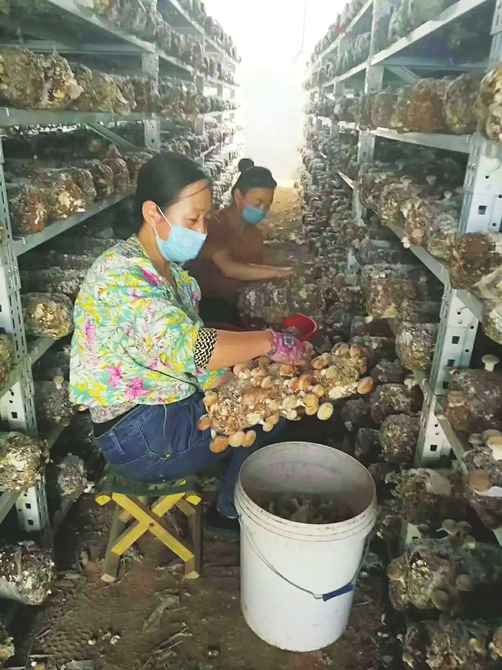 繁忙的食用菌採摘現場。王華攝 直播間裡,80后碩士研究生馬素嫻正在用剛剛採摘的香菇制做湯汁,教觀眾蘸著湯汁吃?面栲姥姥。