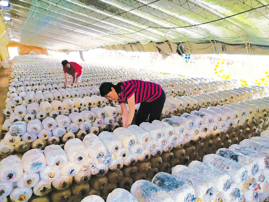 7月13日,陽城縣鳳城鎮白溝村食用菌種植基地,農民在忙碌著。近年來,陽城縣採取“公司+基地+合作社+農戶”的模式,著力發展食用菌產業,為農民就業增收提供了保障。