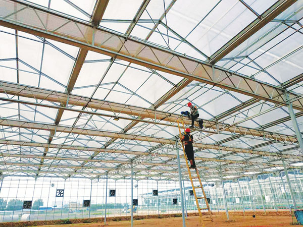 7月25日,建設工人冒著酷暑正在育苗車間安裝天窗機電系統。我國蔬菜重點縣曲沃,蔬菜種植面積高達15.02萬畝,佔全縣耕地面積一半以上。