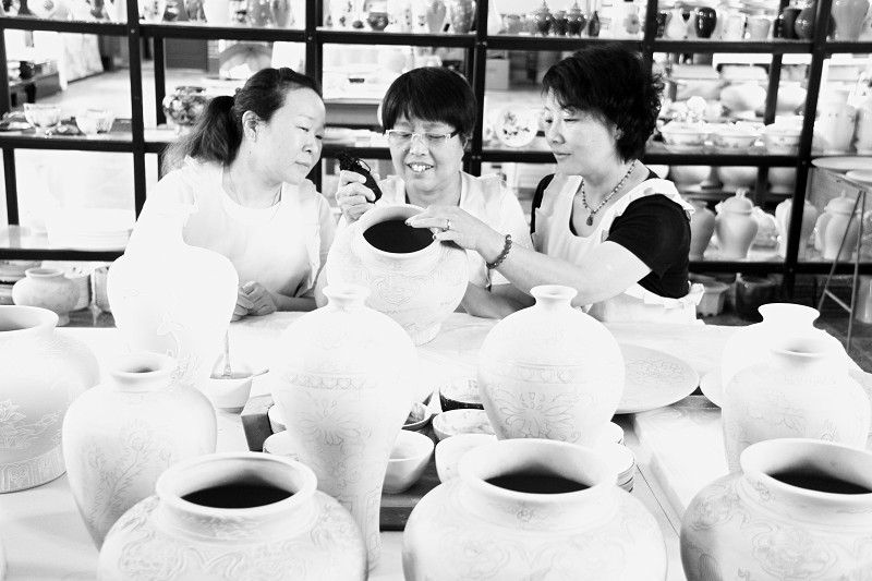 8月2日,在陽城縣僑楓瓷業有限公司陶瓷生產車間內,農民工技術人員正在一起學習交流省級非遺喬氏法花陶瓷手工制作技藝。近年來,陽城縣陶瓷企業大力弘揚工匠精神,在生產一線著力培養具有創新能力的農民工專業技術人才,採取走出去學、請進來教、在崗培訓等辦法,為全縣陶瓷企業培養了近萬名專業技術骨干力量,有效促進了產品提質增效,既解決了農民就業難題,又增加了農民收入,同時促進了陶瓷企業發展。