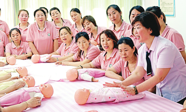 6月26日,在呂梁市離石區貝親職業培訓學校,呂梁山護工養老陪護、母嬰護理第29期培訓學員在老師的指導下實際操作。來自離石區以及臨縣的111名學員參加了此次培訓,其中20名學員來自貧困家庭。