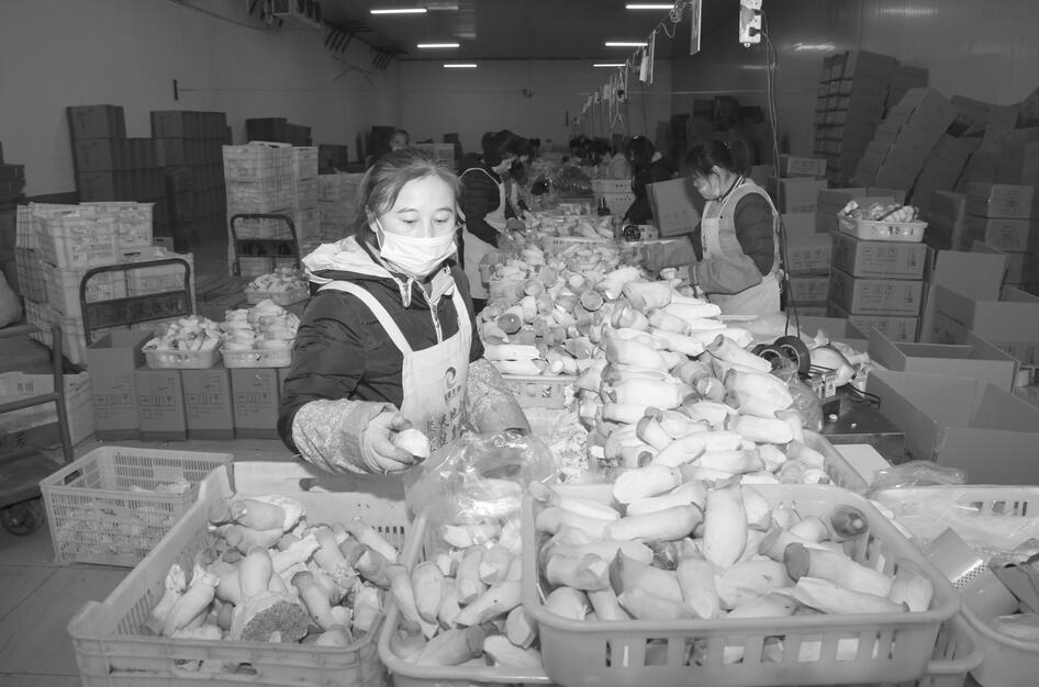 2月1日,洪洞縣萬安鎮西梁村,山西聚源生物科技有限公司的工人正在流水線上分裝杏鮑菇。據悉,該公司成立於2020年1月1日,主要從事食用菌工廠化生產,開拓和整合產業鏈的上下游,建成集生產、科研與銷售於一體的現代農業食品科技公司。