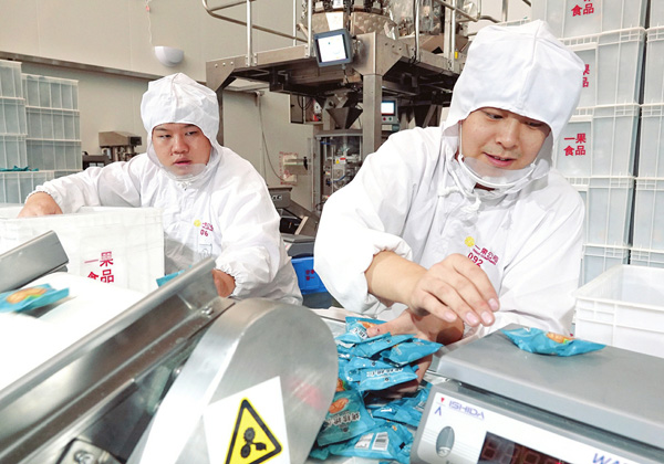在江蘇匯祥食品有限公司,工人們正在加工要出口的黃桃罐頭。 張開虎 攝 受世界經濟增長乏力、貿易摩擦加劇、海外新冠肺炎疫情持續蔓延等多重因素疊加影響,我國外貿外資發展的外部環境更趨復雜嚴峻,農業穩外貿穩外資工作也正面臨著新的挑戰。