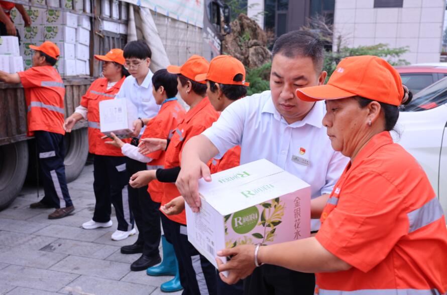 山西新聞網三農頻道訊 炎炎夏日,在“奮斗之城”——昔陽縣的大街小巷中,活躍著一群默默奉獻的身影,他們便是縣城環衛工人。近日,昔陽農商銀行組織青年志願者,向頂著高溫酷暑、堅守崗位,始終奮戰在一線的環衛工人們送去了降暑飲品,希望他們能在堅守工作崗位的同時,保重自己的身體,做好防暑工作。環衛工人紛紛表示,他們將立足崗位、努力工作,以實際行動回報社會的關愛和期望。