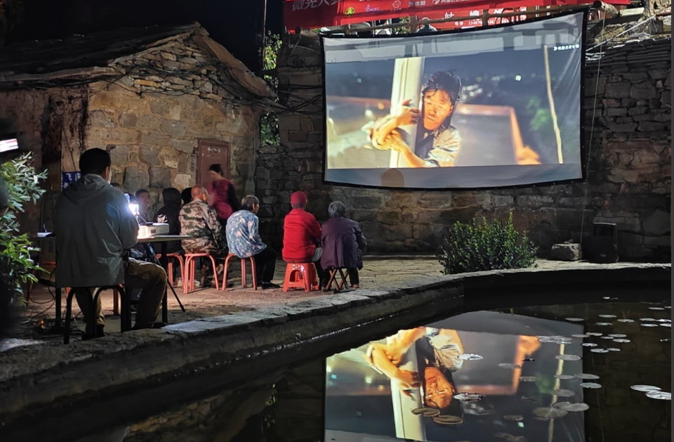 七點左右,天已擦黑,電影正式開始。“大家好,今天放映的是國慶70周年獻禮片《我和我的祖國》,全片由七個獨立故事組成,講述了……”隨著杭州人民廣播電台FM89杭州之聲主播、資深電影講述人雷鳴聲情並茂的描述,老鄉們也開始了這場觀影之旅。