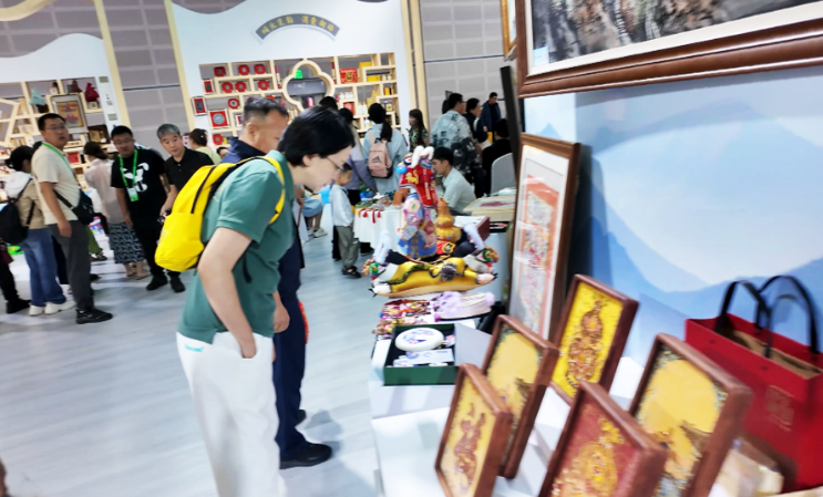 此次和順縣參展團隊陣容強大,匯聚了卉峰手工繡藝中心、德藝文化藝術傳播有限公司、和之緣工藝品制作工作室、伴山岩語文化傳播有限公司及艷麗婚慶文化傳媒有限公司五家代表性文化企業的800余件精選展品,涵蓋集市、鄉村、非遺三大類別,種類豐富,工藝精湛,吸引了大量游客和採購商駐足欣賞、問詢購買。