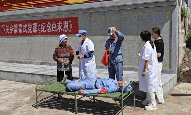 沉浸式演繹,讓歷史照進現實。在楊庄村,一場別開生面的沉浸式紅色實景劇《紀念白求恩》正在上演。該劇由楊庄村25名黨員群眾自編自演完成,時長20分鐘。全劇以白求恩在楊庄村的戰斗、生活事跡為背景,4個篇章的情景式演出,生動再現了白求恩同志毫不利己、專門利人的崇高精神和楊庄村群眾軍民同心、支援抗戰的精神。把文藝會場變成黨課陣地,將黨性教育融入日常,有效提升黨員教育培訓工作質效。今年80歲的村民耿玉鳳,演繹了當年老大娘為救治傷員用自家老母雞熬雞湯的故事。她每次排練都精神抖擻,還把家裡保存的老風箱拿出來做道具。“俺們從小就知道,要多為別人、多為集體做事情。”