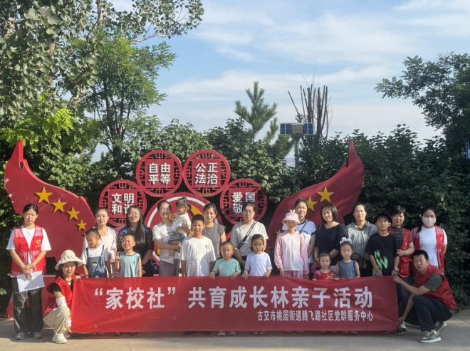為進一步加強家庭、學校、社區之間的聯系,形成教育合力,8月19日,古交市桃園街道騰飛路社區黨群服務中心以黨建為引領,舉辦“家校社”共育成長林項目之 親子活動,眾多家庭積極參與。 活動前期,社區依托黨建網格體系,通過網格群發布通知,明確活動時間為8月19日早上8點,活動地點為南山森林公園,充分發揮黨建在基層治理和服務群眾中的引領作用,確保活動信息高效傳達。