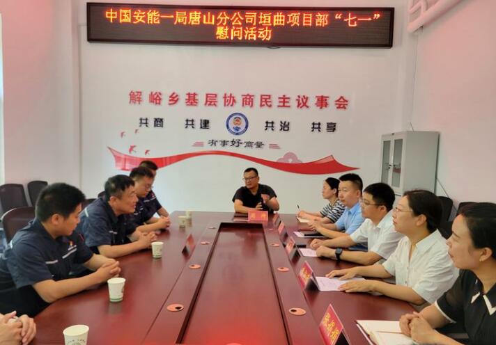 山西新聞網三農頻道訊 為弘揚黨的光榮傳統和優良作風,加強黨內關懷,傳遞組織溫暖,進一步發揮企業的社會責任,在中國共產黨成立103周年之際,6月28日,中國安能一局唐山分公司垣曲項目部黨總支書記郝崇東一行,來到解峪鄉開展慶“七一”走訪慰問活動,旨在通過實際行動表達對當地黨員群眾的深切關懷。 座談會上,項目部成員們首先與解峪鄉黨政班子進行了親切友好的交流。