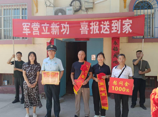 “咚咚鏘!咚咚鏘!”7月23日上午,永濟市城北街道舜都花苑小區鑼鼓喧天,熱鬧非凡。一支由永濟市人民武裝部、永濟市退役軍人事務局、城北街道退役軍人服務站和涑水社區等人員組成的“報喜團”,來到現役軍人薛毅家中送上立功喜報,感謝他們為國家培養輸送優秀人才、為國防建設作出的貢獻。